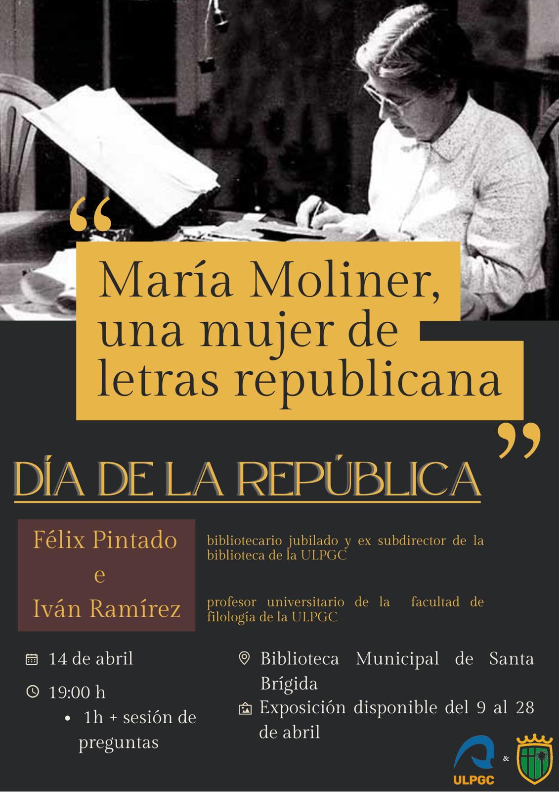 Con motivo de la conmemoración del Día de la República, la Biblioteca Municipal de Santa Brígida, dependiente de la Concejalía de Cultura, celebrará el próximo martes, 14 de abril, a las 19.00 horas, el acto académico y cultural María Moliner, una mujer de letras republicana.
