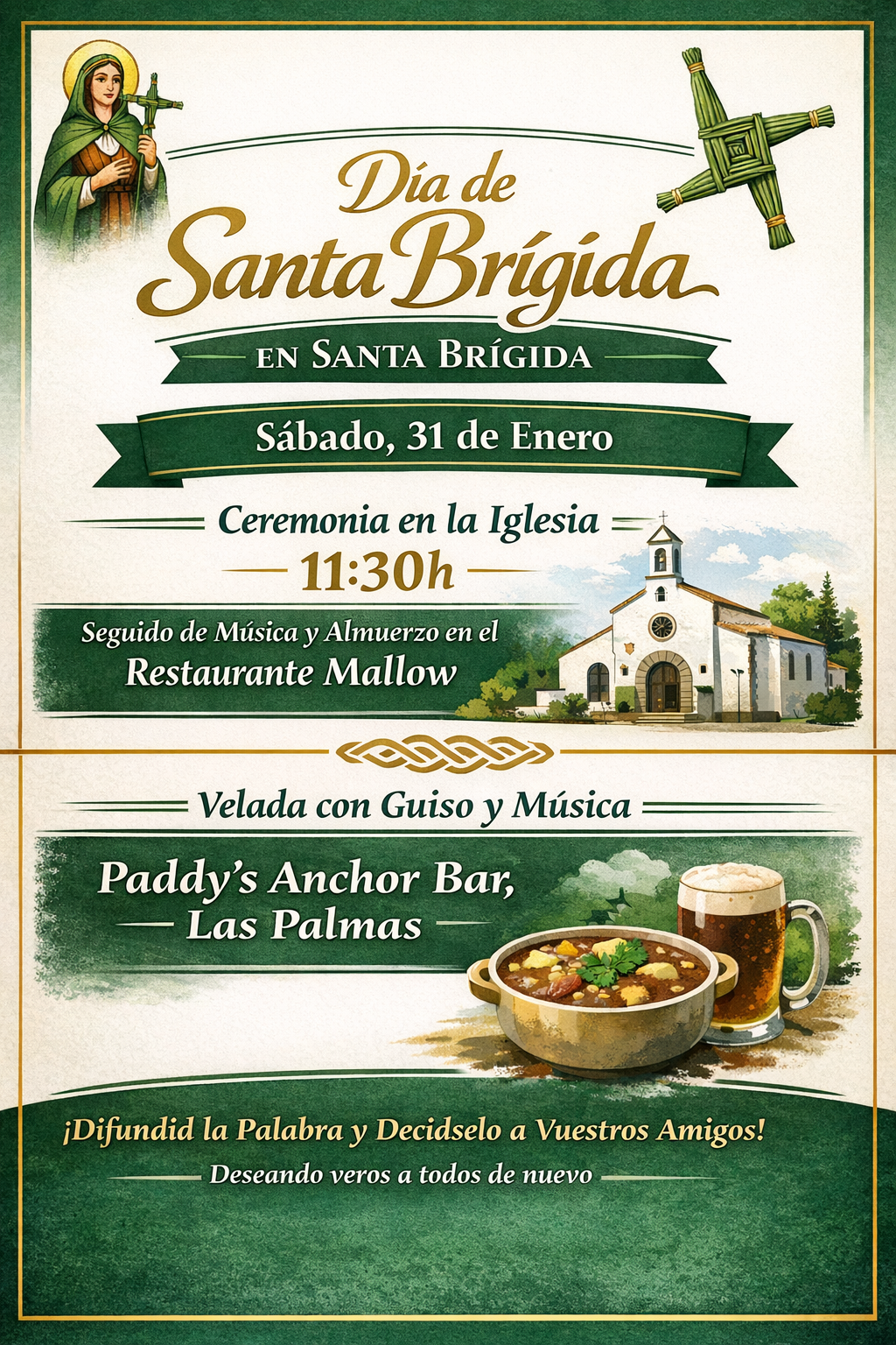La Villa de Santa Brígida celebrará el sábado, 31 de enero, una misa solemne especial en la iglesia parroquial para conmemorar la festividad de Santa Brígida de Irlanda, Patrona del ... Leer más