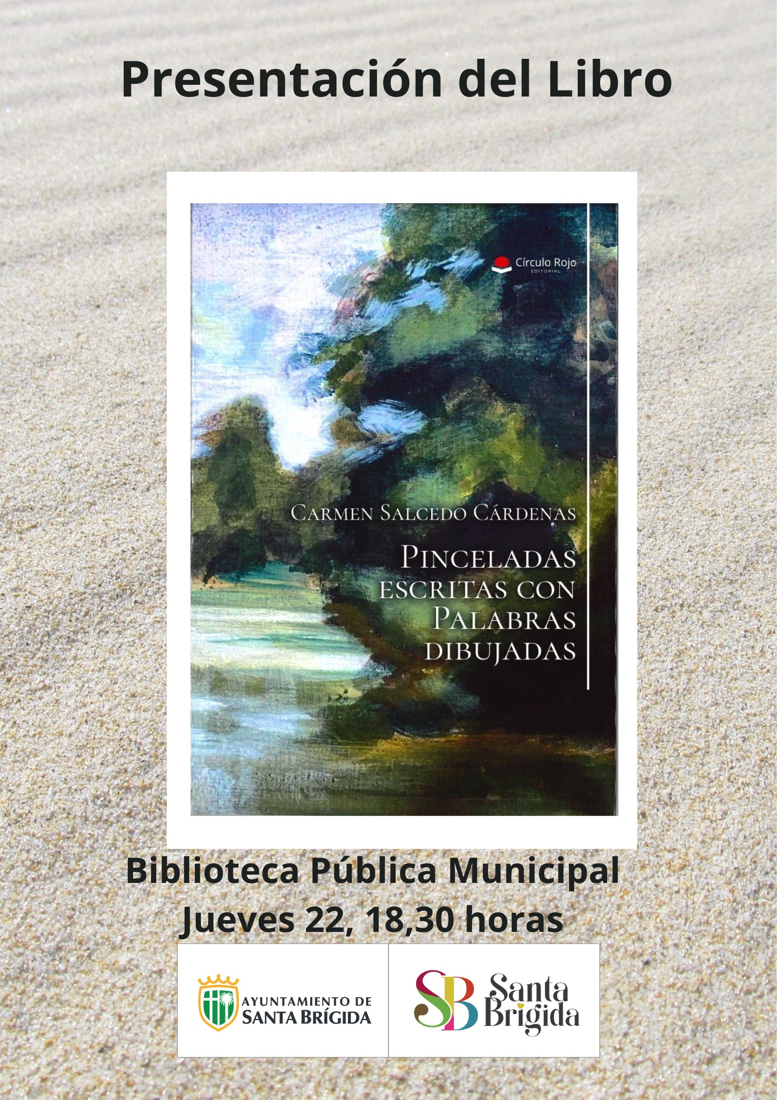 El Ayuntamiento de Santa Brígida invita a la ciudadanía a la presentación de Pinceladas escritas con palabras dibujadas, de Carmen Salcedo Cárdenas, que tendrá lugar el próximo 22 de enero, a las 18:30 horas en la Biblioteca Municipal. Se trata de una antología poética y artística publicada bajo el sello de Editorial Círculo Rojo.