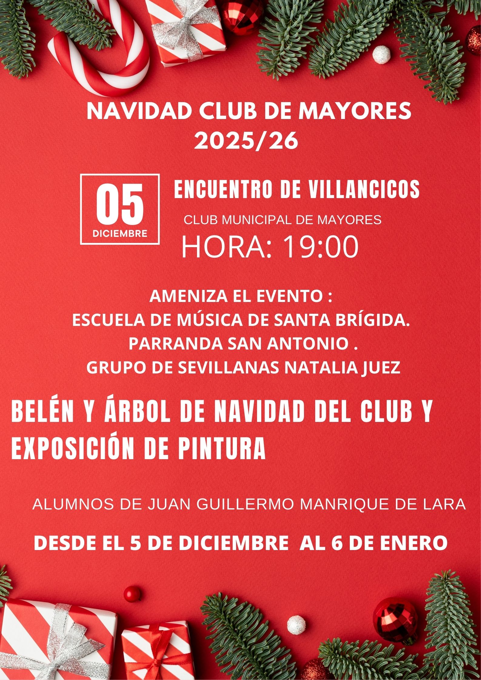 CLUB MUNICIPAL DE MAYORESDE LA VILLA DE SANTA BRIGIDA C. Mirador de la Villa s/n, Santa Brígida, Las Palmas, EspañaEl Club de mayores inicia su campaña de Navidad el próximo viernes 5 de diciembre con la inauguración de nuestro Belén y un maravilloso árbol realizado por el proyecto de ganchillo "Tejiendo sueños", además de la exposición de pintura al óleo y acuarela de los alumn@s de Don Juan Guillermo Manrique de Lara. Amenizan el ... Leer más