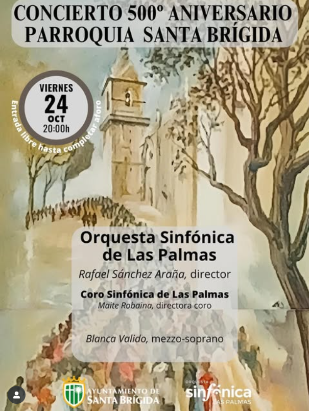 Iglesia de la Villa de Santa Brígida C. Real, Santa Brígida, Las Palmas, EspañaEl viernes, 24 de octubre a las 20:00 horas, la Orquesta y Coro de la Sinfónica de Las Palmas se unirán a la mezzosoprano Blanca Valido para ofrecer un programa cargado de emoción y espiritualidad en la Iglesia de Santa Brígida. Entre las piezas que se interpretarán destaca el Stabat Mater, obra del compositor canario ... Leer más